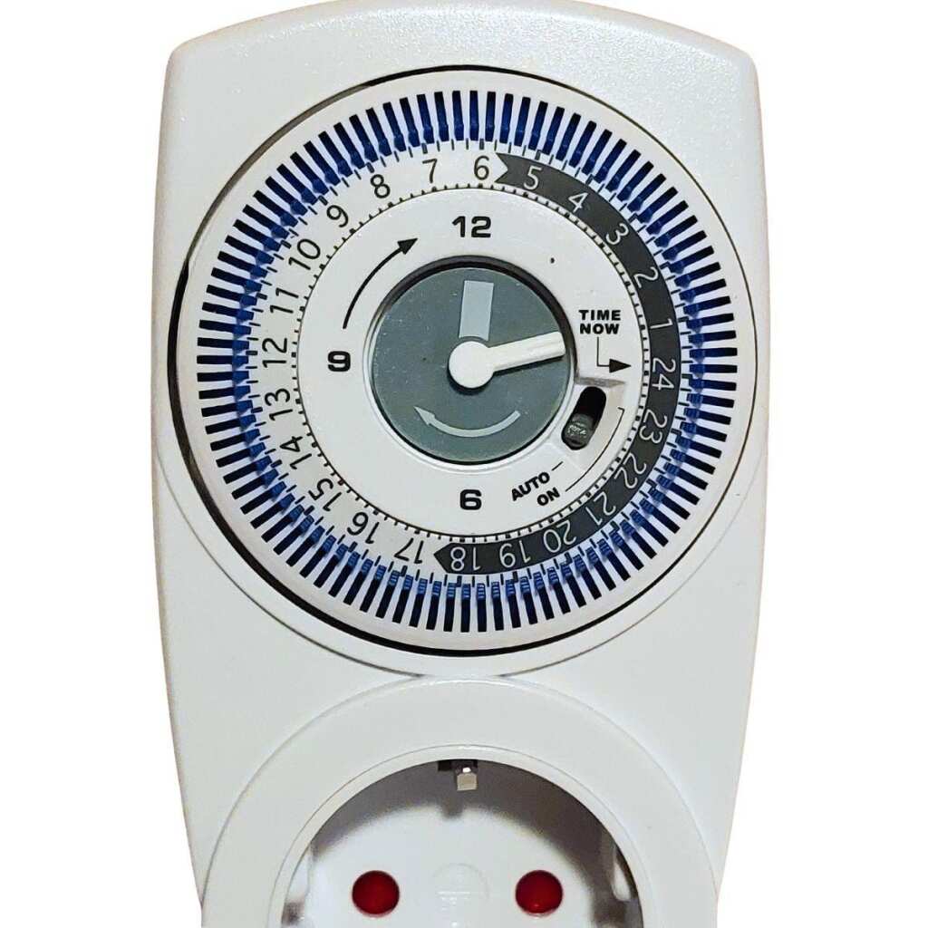 Die TBOX 1M Zeitschaltuhr lässt sich einfach programmieren, indem du die Einstellscheibe drehst und die gewünschten EIN- und AUS-Schaltzeiten festlegst. Die Schaltintervalle betragen mindestens 15 Minuten.